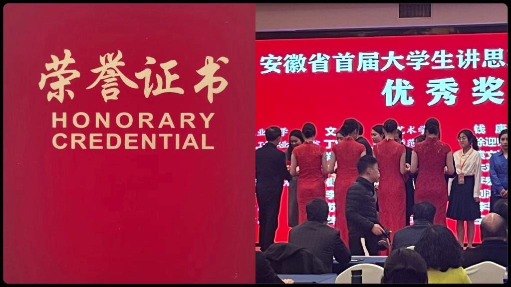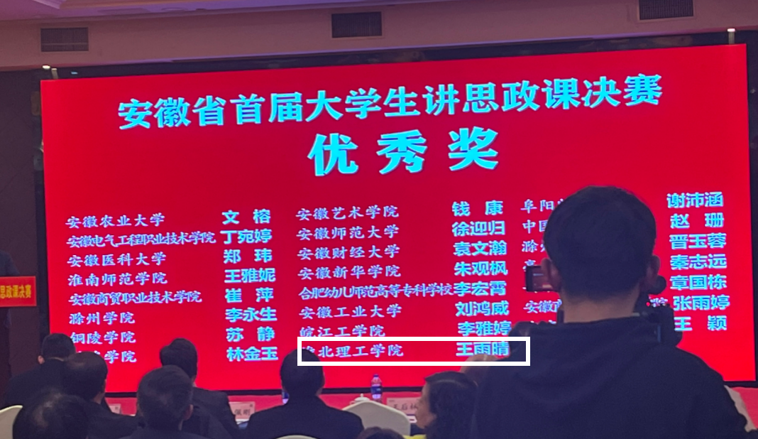 近日,安徽省首届大学生讲思政课决赛活动圆满结束,来自全省43所高校、26个参赛队伍的76名选手参加决赛。决赛采用现场赛形式,经过激烈角逐,本次比赛共产生特等奖4名、一等奖8名、二等奖15名、优秀奖和入围奖各23名。经各高校初赛推荐、片区赛遴选、决赛角逐等环节,由我校beat365英国官网网站教师孙澄澄指导,经济管理与建筑工程学院学生王雨晴团队的参赛作品《下好科技自主创新的“先手棋”》获得优秀奖。