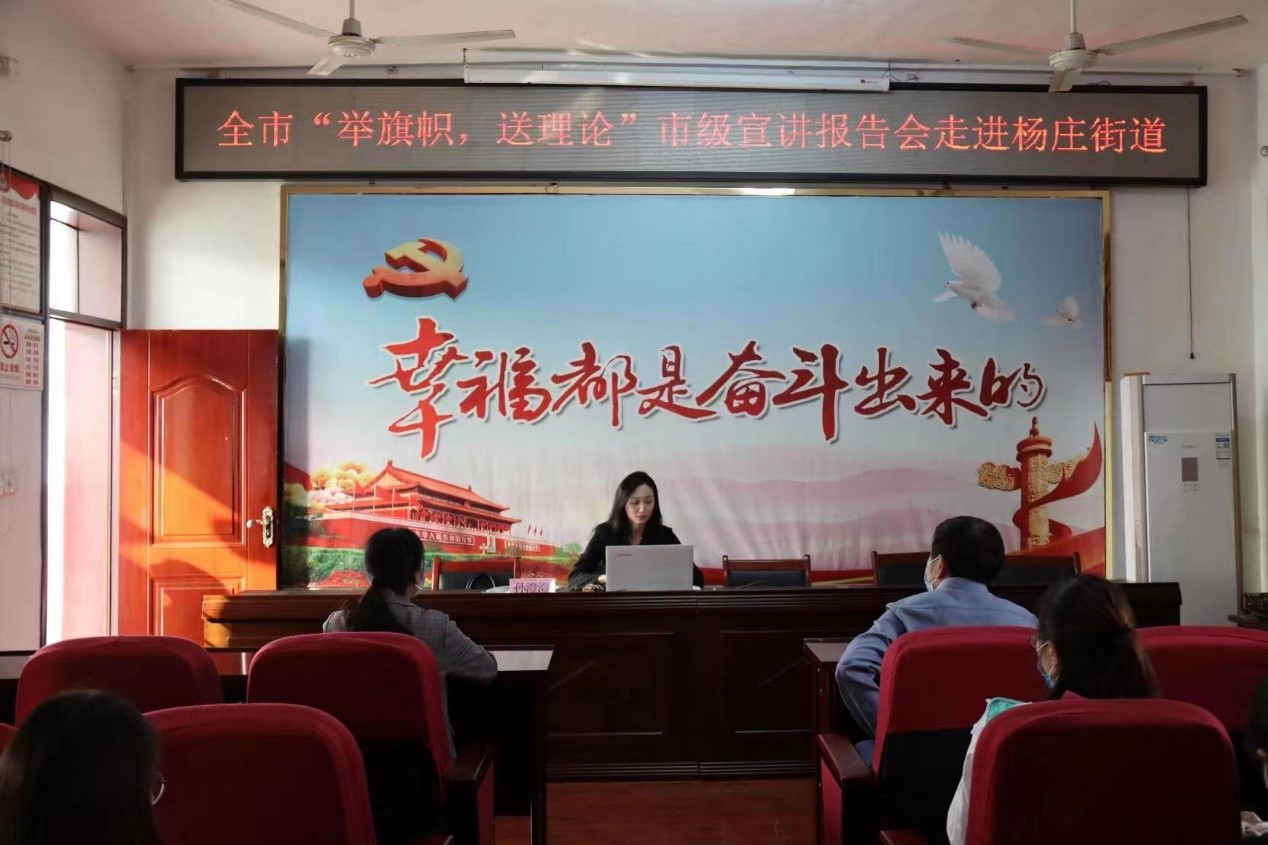 为把学习贯彻习近平总书记在省部级主要领导干部专题研讨班上重要讲话精神、《习近平谈治国理政》第四卷不断引向深入。beat365英国官网网站beat365英国官网网站刘奔前和孙澄澄两位老师受到中共淮北市委宣传部中共淮北市委讲师团的指派,分别走进东街道和杨庄街道开展“举旗帜 送理论”专题宣讲活动。