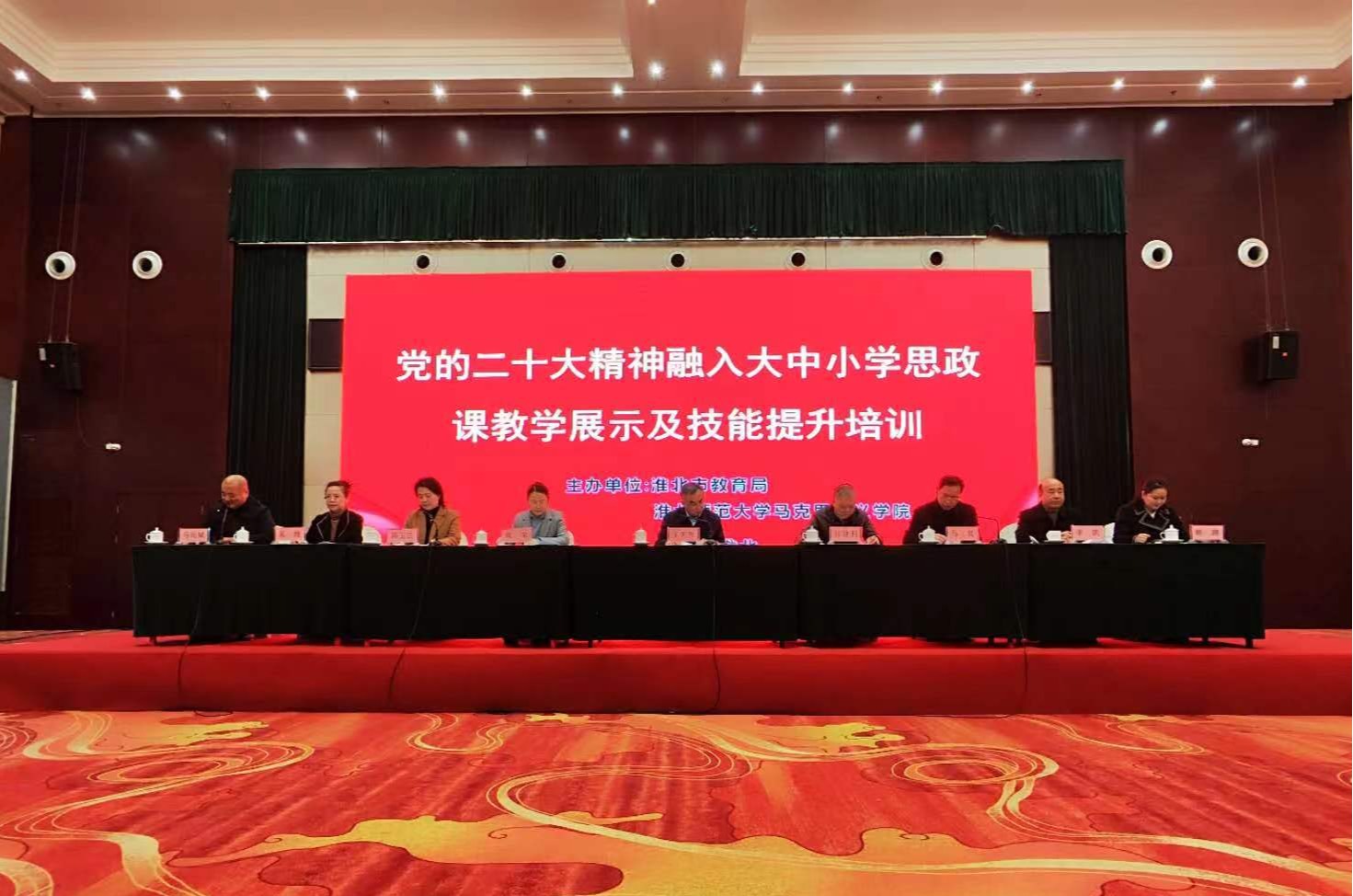 2023年3月18日,由淮北市教育局和淮北师范大学beat365英国官网网站联合举办的“党的二十大精神融入大中小学思政课教学展示及技能提升培训”在淮北矿业(集团)有限责任公司会议中心举行。我校党委委员、副校长汪建利,校党委委员、beat365英国官网网站与经济管理学院院长吴玲受邀出席会议,beat365英国官网网站专业老师参加了本次活动,孙澄澄、廖永林两位老师作为选手参加比赛和成果展示。