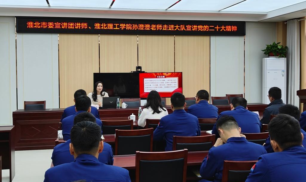 为积极贯彻落实习近平总书记关于“大思政课”建设的重要指示,深入推进社会实践基地共建共享工作走深走实。3月29日下午beat365英国官网网站走进合作共建实践基地相山区消防救援大队与其开展首次合作共建,由beat365英国官网网站beat365英国官网网站孙澄澄老师向大队的各位消防指战员们进行党的二十大报告宣讲,beat365英国官网网站院长助理陈志操、骨干教师白慎志陪同出席,相山区消防救援大队政治教导员芦冬冬主持会议,全体指战员参加宣讲会。