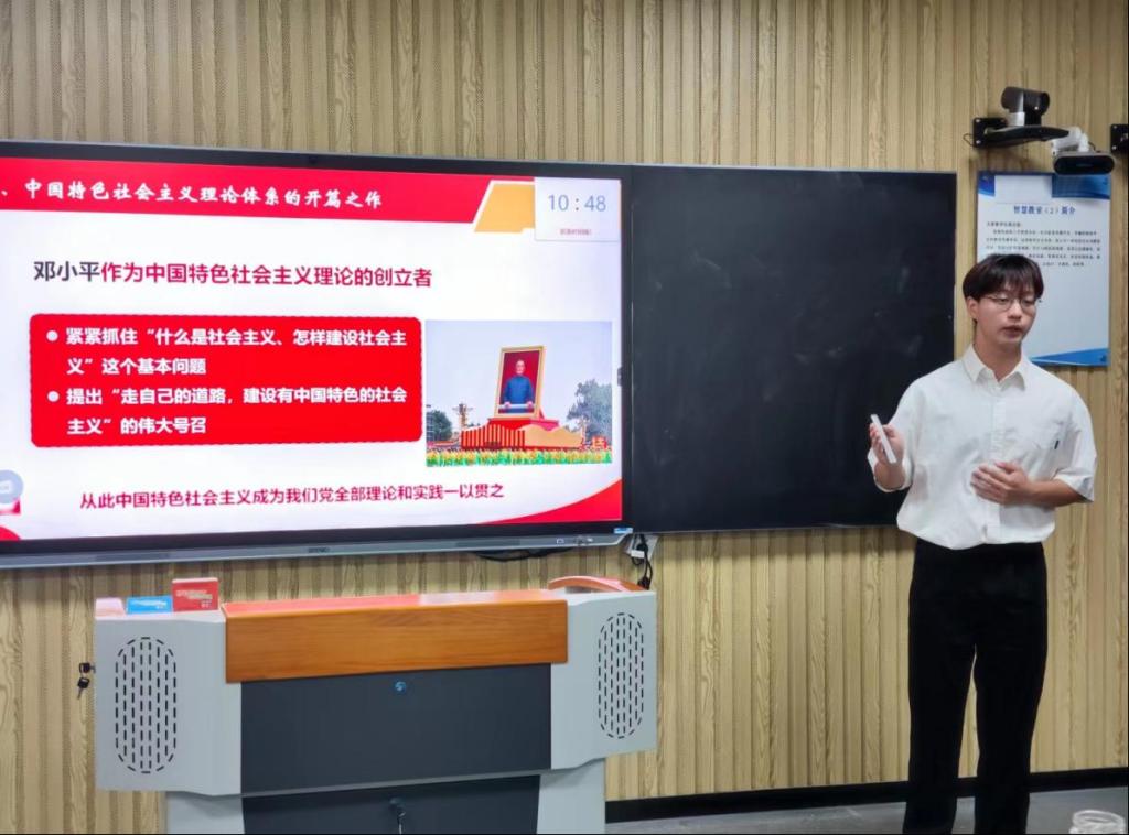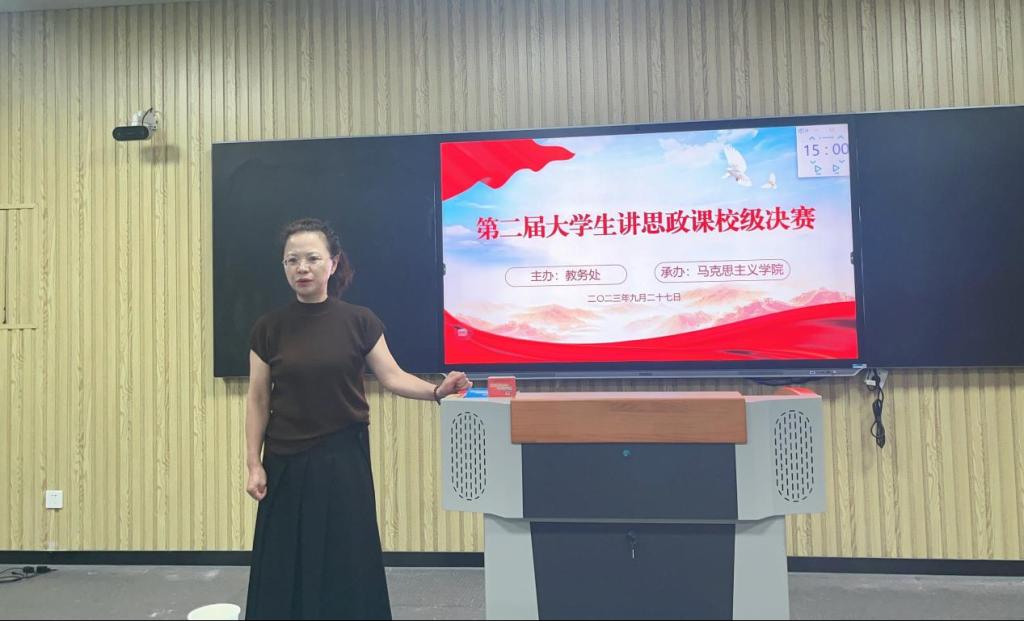 为深入学习贯彻习近平新时代中国特色社会主义思想主题教育,深化思政课改革创新,全面推进“大思政课”建设,落实拓展大学生参与思政课教学实践教学途径。根据《中共安徽省委教育工委关于组织开展第二届大学生讲思政课展示活动的通知》文件要求,在学校党委的高度重视及安排部署下,由教务处主办,beat365英国官网网站承办的第二届大学生讲思政课比赛校级决赛于2023年9月27日在一教210智慧教室顺利举办并取得圆满成功,并经过精心的专家指导和材料把关于10月15日上报6组同学参加省级片区赛。