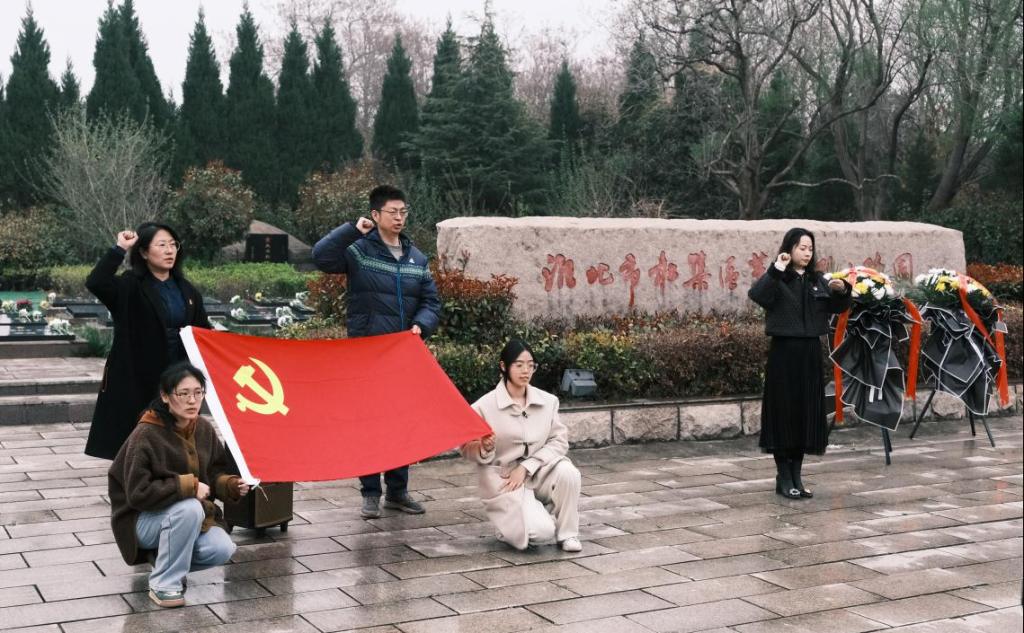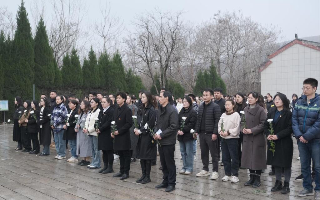 加强爱国主义教育,弘扬英烈精神,传承红色基因,坚定理想信念,丰富党支部活动形式,在清明节即将到来之际,beat365英国官网网站党支部联合教育学院两支部于3月27日下午赴淮北市杜集区革命烈士陵园共同组织开展了“清明祭英烈”主题党日活动,三个支部部分师生党员代表及部分学生团员代表共110人参加了此次活动。