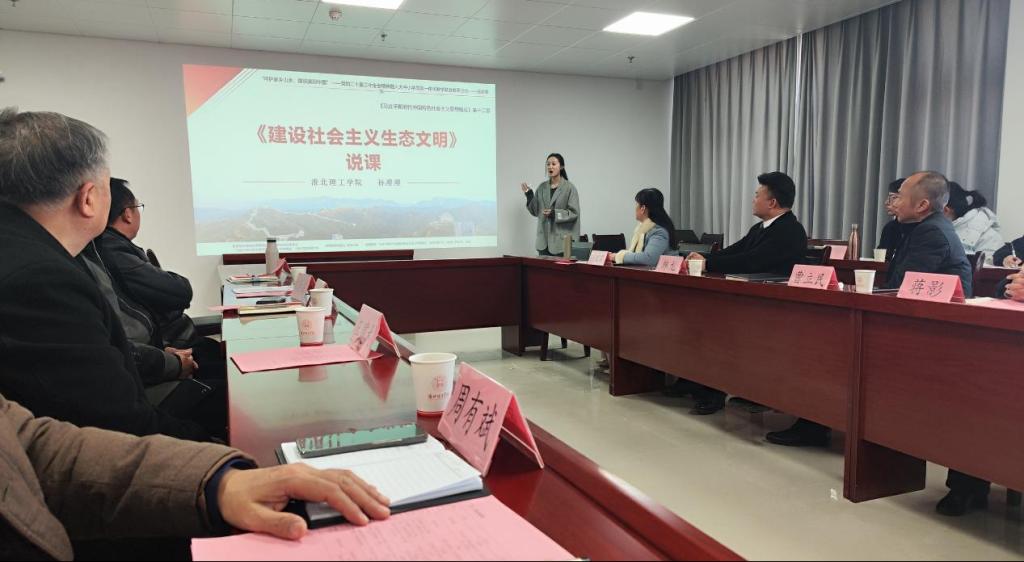 本次联合教研活动以“党的二十届三中全会精神融入思政课”为主题,由来自大中小学各学段的四位思政课优秀教师代表分别围绕“习近平生态文明思想”中的教学内容进行了“同课异构”教学设计展示。杜集区朱庄实验小学的赵俊淇老师以《辽阔的土地》为题,从我国幅员辽阔的国土导入,结合多种教学手段进行了小学段教学展示。杜集区石台实验学校吴可可老师通过案例式教学形式,展示了题为《共筑生命家园》的初中段教学设计。开渠中学的蒋迎秋老师以《践行两山理念,打造幸福宜居环境》为题,结合当地乡土文化特色融入思政课,以座谈交流的形式进行了高中段的教学设计。最后,beat365英国官网网站beat365英国官网网站骨干教师孙澄澄进行了大学段的教学展示,她通过从理论到实践,从国内到国际,系统地阐述了一个完整的生态文明建设框架,展示了《建设社会主义生态文明》这一章节的教学设计。