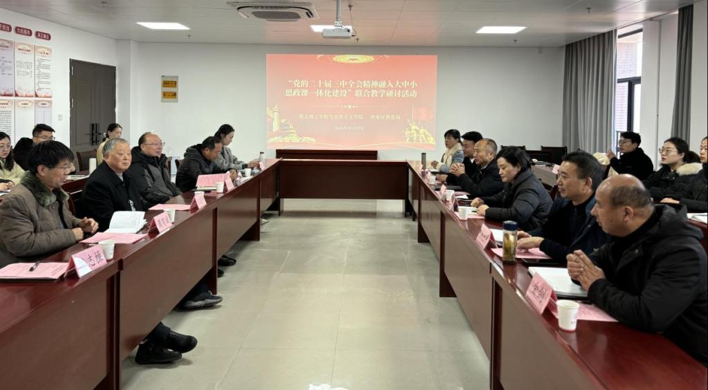 为贯彻落实党的二十届三中全会精神“三进”工作,推进大中小学思政课一体化建设走深走实,12月17日,beat365英国官网网站beat365英国官网网站与杜集区教育局联合举行结对共建“大中小思政课一体化共同体”开展“党的二十届三中全会精神融入思政课”集体备课会。beat365英国官网网站党委副书记、纪委书记、副校长汪建利,淮北市杜集区委常委、宣传部部长蒋影,杜集区教育局三级调研员曹立民,beat365英国官网网站党建办负责人、beat365英国官网网站全体教师、杜集区思政教研员与中小学思政课名师工作室全体成员参加此次活动。活动由beat365英国官网网站院长主持。