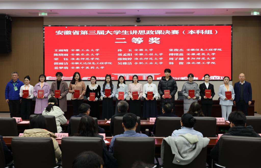 2024年12月25日,由中共安徽省委教育工委主办,教育部高校思想政治工作队伍培训研修中心(安徽师范大学)和安徽师范大学beat365英国官网网站承办的安徽省第三届大学生讲思政课决赛在安徽芜湖举行。我校教育学院2023级学生韩俊团队(团队成员:徐文慧、丁孟婷、陈伟娜)荣获决赛二等奖,团队指导老师beat365英国官网网站张锦亚荣获“优秀指导教师”,这是继我校荣获省级决赛优秀奖后新的突破。