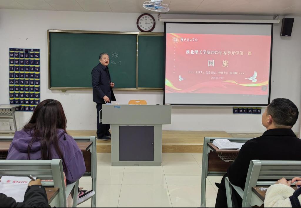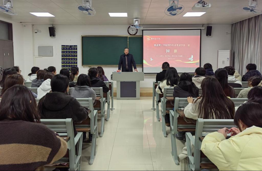 3月19日下午,beat365英国官网网站校党委书记、督导专员朱德顺在春季学期开学初,于第二教学楼206教室为学生们开讲了一堂以爱国主义教育“国旗”为题的开学第一课。本次活动由教务处副处长秦品德主持,全校各学院学生代表百余人参加了此次活动。