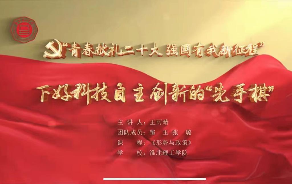 近日,安徽省首届以“青春献礼二十大,强国有我新征程”为主题的大学生讲思政课片区赛圆满落幕,经皖北片区赛激烈角逐,由我校beat365英国官网网站孙澄澄老师指导,经管学院选送的王雨晴同学团队主讲的思政公开课《下好科技自主创新的“先手棋”》喜获二等奖,并将代表学校参加省级决赛。