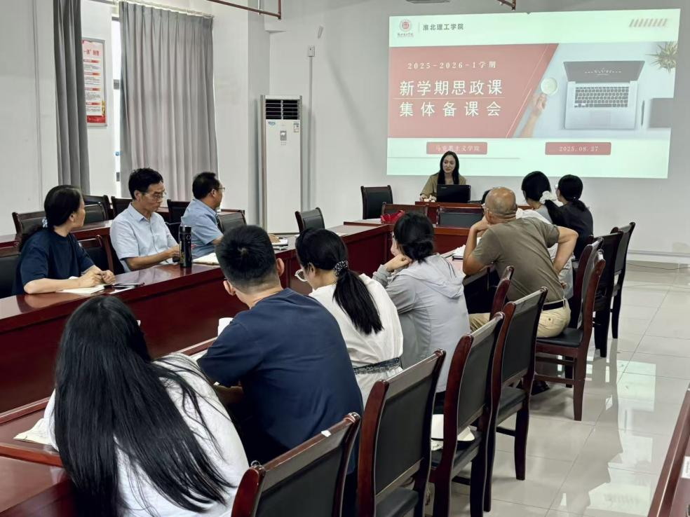 8月27日下午,beat365英国官网网站于行政楼214会议室举行了2025-2026学年第一学期思政课集体备课会。会议由《毛泽东思想和中国特色社会主义理论体系概论》教研室主任孙澄澄主持,全体教师参会。