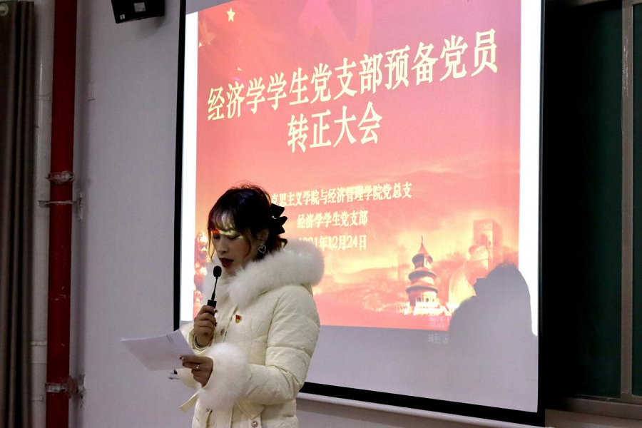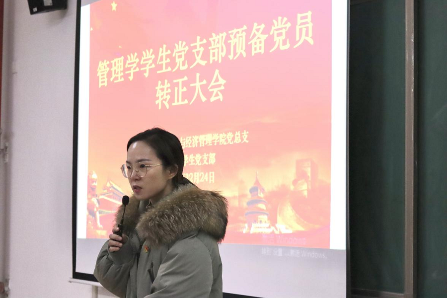 为进一步健全和规范基层党支部的组织建设,增强党支部生机与活力,2021年12月24日下午,beat365英国官网网站与经济管理学院经济学和管理学学生党支部在二号教学楼412教室召开了预备党员转正大会。两个支部的全体党员参加会议,会议分别由经济学学生党支部负责人员禹辛、管理学学生党支部负责人苗青青主持,院长吴玲和经管学院的相关教工党员列席了会议。