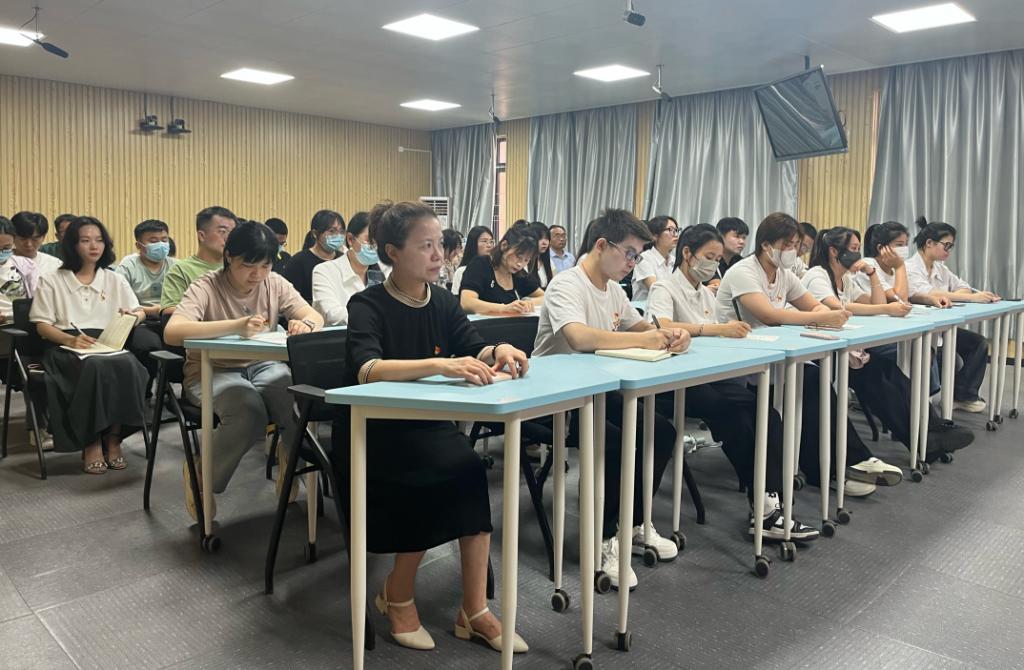 朱德顺根据主题教育“四个讲清楚”的要求,围绕主题并结合学院具体情况,重点从习近平新时代中国特色社会主义思想的科学体系、核心要义、实践要求以及贯穿其中的立场观点方法;党的二十大精神中的战略部署和目标要求;习近平总书记关于教育工作的重要论述;以学铸魂做一名合格思政课老师、学生如何在德智体美劳全面发展等方面进行了论述。
