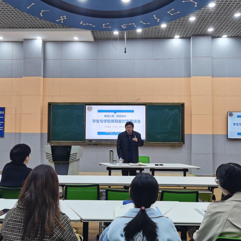 会上,王院长指出,本次座谈会是师生面对面互动的有效平台,对同学们在学习中存在的困惑进行了解,同时调研同学们对目前教学现状的意见与建议,为同学们考研目标与方向提出指导思想,表示希望在场同学畅所欲言,表达广大同学的诉求,为学院建设发展献计献策。