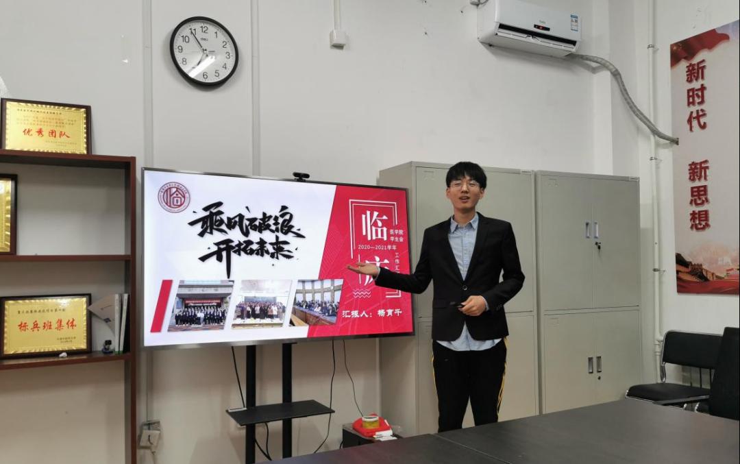 马金玉老师最后总结中强调,一是学生组织要充分发挥先锋模范带头作用,学生组织要切实加强工作作风持续改进,形成阳光、活力、积极、团结的成长氛围。二是,加强各组织成员的综合培养,一个学生干部就是一面旗帜,要在每个学生干部的思想、学业、能力、才干上见成效。三是,明确使命,勇于担当,做思想先进的领航者,健康成长的引航者,做专业学习的领跑者,团结奋进的实践者。四是,在专业建设、学风建设中做贡献,围绕考研率、四六级通过率、执业医师通过率、临床技能大赛等重要工作中发挥学生组织的力量。(图文供稿:王紫琦 汪天鹏)