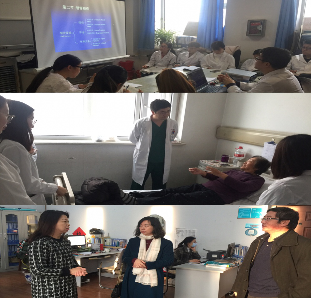 11月19日下午,开云kaiyun官方网站教学副院长王志宏,教务办公室李石羽,奚琢一行三人赴吉林省人民医院,对2015级临床专业临床见习教学开展情况进行检查。检查组分别走访了消化内一科,消化内二科,神经外科,内分泌代谢病二科,胃肠外科,呼吸内二科,心血管内一科,心血管内二科8个临床教研室。同时观摩了带教教师理论授课及床旁教学过程。
