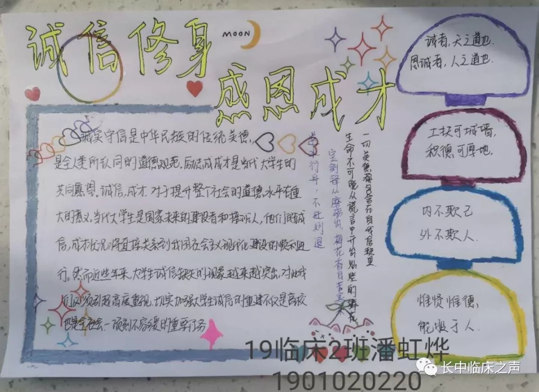 近日,开云kaiyun官方网站根据学校“诚实守信·励志成才”主题教育月安排,为弘扬中国传统文化,强化资助育人效果,培养学生诚信做人、自强不息、心怀感恩、勇担责任的优秀品质,举办手抄报活动。本次活动由院学生会生活部组织开展。