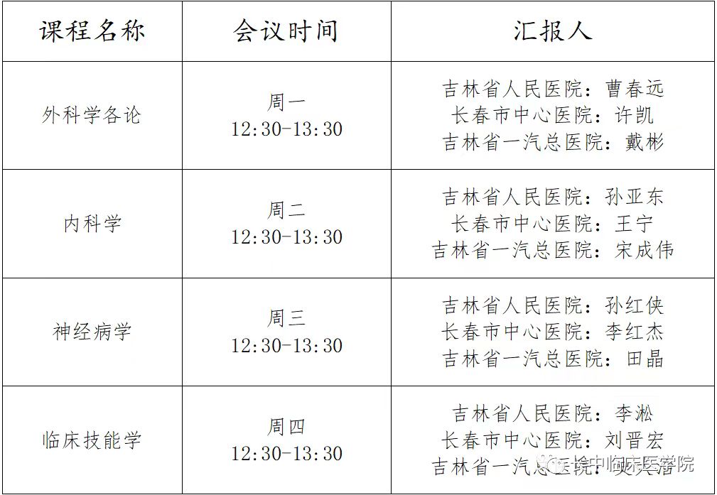 7月10日至13日,开云kaiyun官方网站组织吉林省人民医院、长春市中心医院和吉林省一汽总医院开展4场新学期线上集体备课活动,会议由开云kaiyun官方网站副院长孙聪主持。