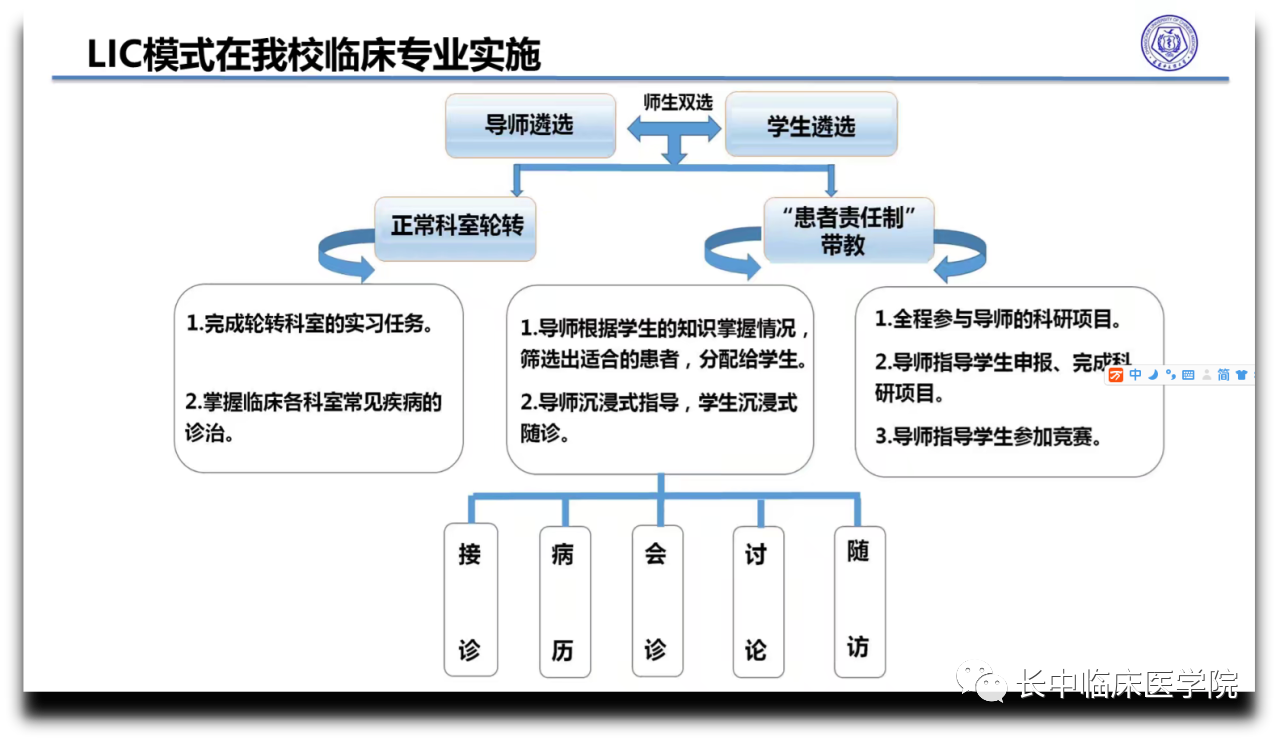 汤勇结合近年来学院开展临床医学专业教学模式改革实践,从时代之需、国家之需、行业之需、人才培养之需等视角,阐释了适时完善、发展临床带教模式的必要性和重要性,详尽讲解了当前被国际上广泛认可和应用的LIC临床带教模式的历史演进、价值意义、具体实施流程以及前期的主要探索等,为深入改进临床带教模式、提高临床带教水平、提高临床教学质量提供了有益的借鉴和启示,促进了学员们思想解放和工作创新。期间,他还结合临床医学本科教学研究课题申报等有关事宜与学员们进行了交流。