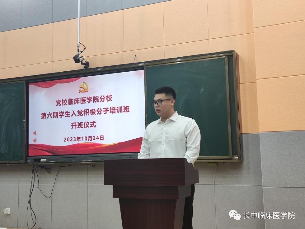 2022级临床医学3班付迪作为学生入党积极分子培训班学生代表发言,郑重承诺学习期间要珍惜培训机会,提高思想认知;严格遵守纪律,细节决定成败;坚持学以致用,做到知行合一。
