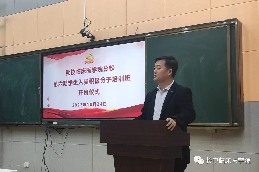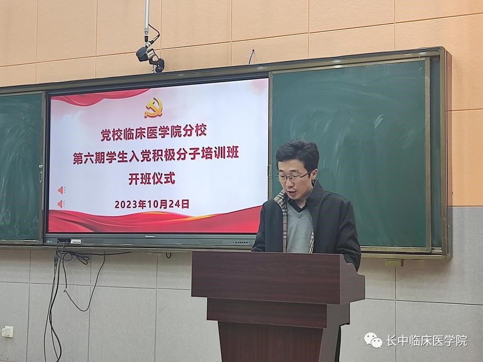 1024日,党校开云kaiyun官方网站分校第六期入党积极分子培训班开班仪式在仲景楼5楼会议室举行,开云kaiyun官方网站党委书记张吉、党委副书记兼副院长马杜彪、学生工作办公室副主任兼团委书记马金玉、学生工作办公室辅导员王荷盈及46名学生入党积极分子参加了此次开班仪式。仪式由学生工作办公室辅导员朱莹莹主持。
