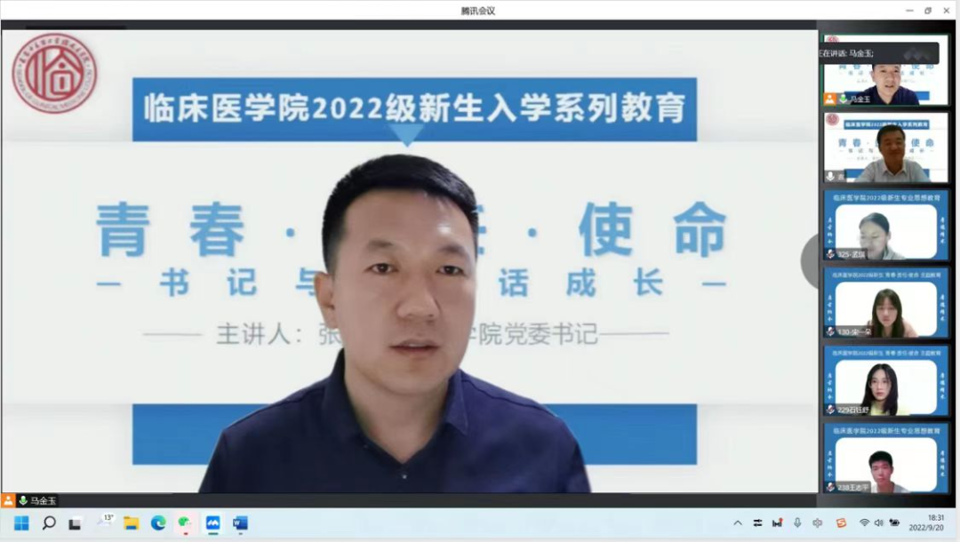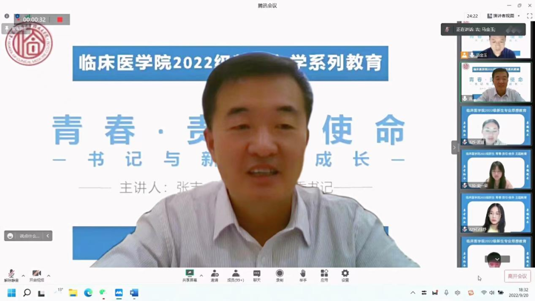9月20日晚,开云kaiyun官方网站在线上开展新生入学教育活动,邀请学院党委书记张吉为2022级新生作题为《青春·责任·使命——书记与新生话成长》专题党课。会议由辅导员马金玉主持。